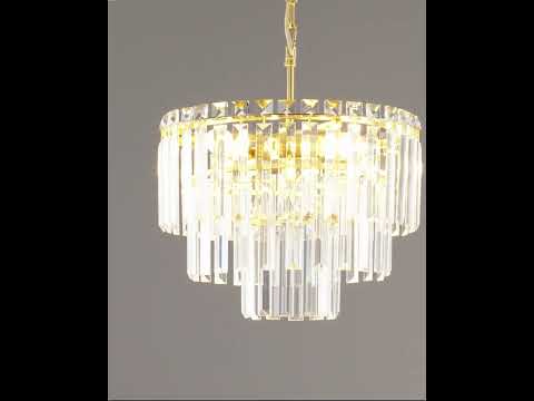 Подвесная люстра Crystal в современном стиле. Металлический каркас золотистого цвета дополнен вставками из прозрачного хрусталя, которые создают изумительную игру света при освещении. Стильный дизайн люстры дополнит любой современный интерьер, с площадью освещения 25 кв. м люстра станет идеальным выбором для больших комнат, а также для обеденной зоны или зала. В качестве источника света подойдут лампы с цоколем Е14 в количестве 9 штук. При необходимости высоту люстры можно отрегулировать с помощью подвесной цепи.