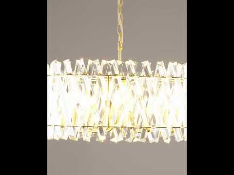 Подвесная люстра Esme в современном стиле. Металлический каркас золотистого цвета дополнен вставками из прозрачного хрусталя, расположенные крест-накрест по окружности они создают изумительную игру света при освещении. Стильный дизайн люстры дополнит любой современный интерьер, с площадью освещения 18 кв. м люстра станет идеальным выбором для больших комнат, а также для обеденной зоны или зала. В качестве источника света подойдут лампы с цоколем Е14 в количестве 8 штук. При необходимости высоту люстры можно отрегулировать с помощью подвесной цепи.