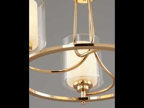 Подвесная люстра из коллекции Maximilian. Плафоны состоят из двух видов стекла: внутренний - из матового стекла для мягкого рассеивания света, внешний - из прозрачного стекла для многослойности. Металлический каркас цвета золота в сочетании с двухслойным плафоном образуют воздушный и элегантный дизайн. Подвесная люстра имеет простой и надёжный способ крепления на крюк. При необходимости можно убрать подвесную цепь или сократить звенья для уменьшения высоты светильника. Люстра Maximilian дополнит любой современный интерьер, отличный вариант для спальни, гостиной комнаты и зала.