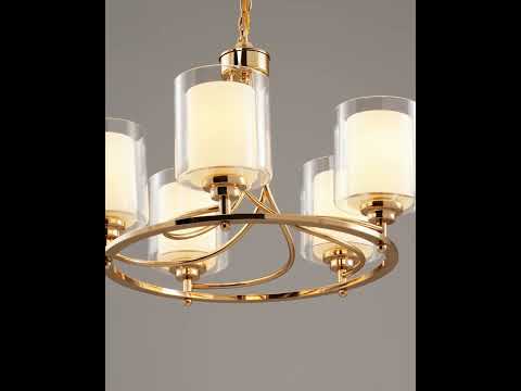 Подвесная люстра из коллекции Maximilian. Плафоны состоят из двух видов стекла: внутренний - из матового стекла для мягкого рассеивания света, внешний - из прозрачного стекла для многослойности. Металлический каркас цвета золота в сочетании с двухслойным плафоном образуют воздушный и элегантный дизайн. Подвесная люстра имеет простой и надёжный способ крепления на крюк. При необходимости можно убрать подвесную цепь или сократить звенья для уменьшения высоты светильника. Люстра Maximilian дополнит любой современный интерьер, отличный вариант для спальни, гостиной комнаты и зала.