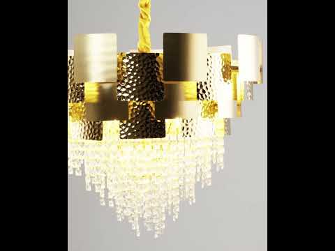 Роскошная подвесная люстра из серии Olly. Металлический каркас из множество пластин плавно переходит в прозрачные подвески из хрусталя, которые создают изумительную игру света при освещении. Оригинальный дизайн люстры никого не оставит равнодушным, став главным украшением комнаты. Площадь освещения составляет 20 м², в качестве источника света подойдут лампы с цоколем Е14 в количестве 10 штук. Общая высота люстры 98 см, при необходимости ее можно уменьшить за счет подвесной цепи.