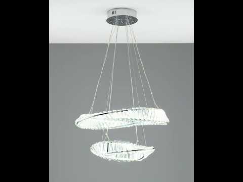 Подвесная люстра Asti в современном стиле. Металлический каркас дополнен вставками из прозрачного хрусталя, которые создают изумительную игру света при освещении. Стильный дизайн люстры дополнит любой современный интерьер, с площадью освещения 22 кв. м люстра станет идеальным выбором для больших комнат, а также для обеденной зоны или зала. В качестве источника света используется LED лента мощностью 80 Вт. При необходимости высоту люстры можно отрегулировать с помощью подвесной цепи.