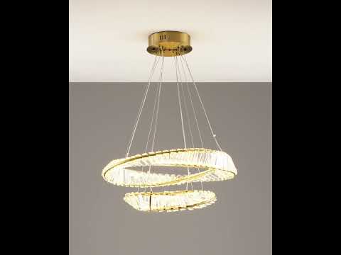 Подвесная люстра Asti в современном стиле. Металлический каркас золотого цвета дополнен вставками из прозрачного хрусталя, которые создают изумительную игру света при освещении. Стильный дизайн люстры дополнит любой современный интерьер, с площадью освещения 22 кв. м люстра станет идеальным выбором для больших комнат, а также для обеденной зоны или зала. В качестве источника света используется LED лента мощностью 80 Вт. При необходимости высоту люстры можно отрегулировать с помощью подвесной цепи.