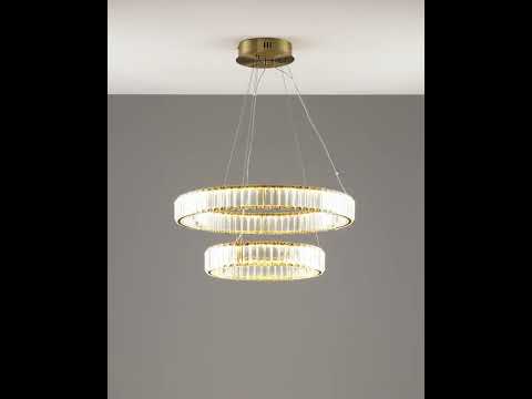 Подвесная люстра Asti в современном стиле. Металлический каркас золотого цвета дополнен вставками из прозрачного хрусталя, которые создают изумительную игру света при освещении. Стильный дизайн люстры дополнит любой современный интерьер, с площадью освещения 15 кв. м люстра станет идеальным выбором для больших комнат, а также для обеденной зоны или зала. В качестве источника света используется LED лента мощностью 56 Вт. При необходимости высоту люстры можно отрегулировать с помощью подвесной цепи.
