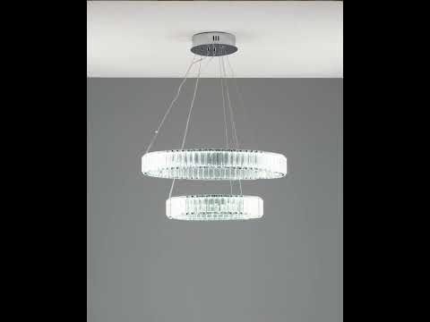 Подвесная люстра Asti в современном стиле. Металлический каркас золотого цвета дополнен вставками из прозрачного хрусталя, которые создают изумительную игру света при освещении. Стильный дизайн люстры дополнит любой современный интерьер, с площадью освещения 15 кв. м люстра станет идеальным выбором для больших комнат, а также для обеденной зоны или зала. В качестве источника света используется LED лента мощностью 56 Вт. При необходимости высоту люстры можно отрегулировать с помощью подвесной цепи.