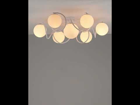 Современная потолочная люстра в лаконичном исполнении из коллекции Circle в стиле модерн. Плафоны в виде шаров выполнены из светлого матового стекла и соединены в единую композицию изогнутыми металлическими трубочками. Такая люстра прекрасно дополнит интерьер спальни, холла или комнаты отдыха.