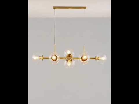 Современная подвесная люстра Long в стиле лофт. Плафоны из прозрачного стекла способствуют созданию яркого освещения и дополняют светильник воздушным дизайном. Металлический каркас надежно крепится к потолку с помощью планки и удерживается благодаря нескольким тросам. Люстру можно регулировать по высоте. В качестве источника света подойдут лампы накаливания или LED с цоколем Е27. Подвесная люстра Long станет прекрасным дополнением в любом современном интерьере. Подойдёт для освещения кухни, зала, гостиной и обеденной зоны.