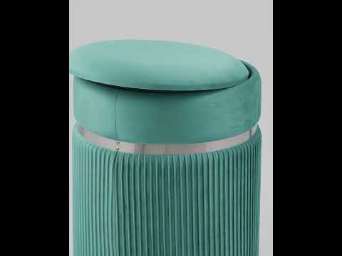 Лаконичная модель пуфа в обивке из мягкого велюра, которая дополнит интерьер вашего дома. Обивка красиво украшена декоративными оборками и металлическим ободком в серебряном цвете. Под сиденьем имеется ящик для хранения различных мелочей. В основании предусмотрены специальные подпятники, которые делают пуф более устойчивым и предотвращают скольжение.Высота пуфа: 44 см. Диаметр: 36 см.