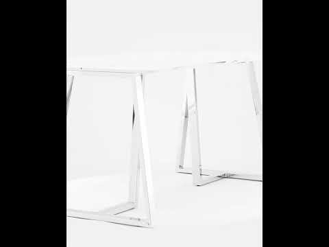 Обеденный стол с красивой стеклянной столешницей белого цвета с рисунком под мрамор. Красивая столешница гармонирует с металлическими ножками оригинальной формы. Такое сочетание смотрится эффектно в любом интерьере. Эта модель подойдет для большой семьи или в дом, где часто бывают гости. Габариты и форма стола позволяют свободно размесить 6-8 человек. Основание стола покрыто порошковой краской и крепится к плите МДФ с обратной стороны стеклянной столешницы. В основании ножек – подпятники для предотвращения царапин на полу. По высоте не регулируются. Размеры столешницы 160*90 см. Высота стола 76 см, вес 55,5 кг.