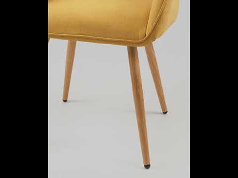 Стильный и мягкий кухонный стул имеет широкую эргономичную спинку и удобные подлокотники. Обивкой послужила высококачественная плотная ткань. Ножки металлические с принтом под дерево.