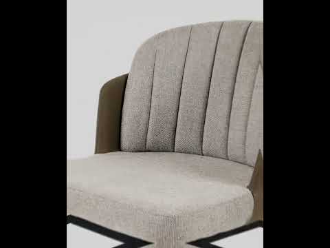 Мягкий кухонный стул с комбинированной обивкой из рогожки и экокожи. Надежная опора достигается благодаря металлическому каркасу и удобным устойчивым ножкам, красиво украшенным золотом. Спинка состоит из двух элементов, внутренняя часть с вертикальной строчкой