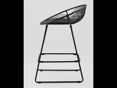 Спинка и сидение выполнены из металлических прутьев черного цвета. Подушка изготовлена из черной экокожи. Ножки выполнены из металла.