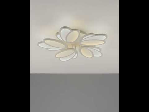 Современный светодиодный потолочный светильник. Акриловые плафоны, встроенные в белый металлический каркас, мягко и равномерно рассеивают свет. С помощью пульта управления можно настроить цветовую температуру в пределах 3500K-6500K. Практичный и современный дизайн светильника прекрасно подойдет для освещения интерьера в стиле хай-тек и минимализм. Светильник крепится к потолку с помощью планки, подходит также для натяжных потолков.