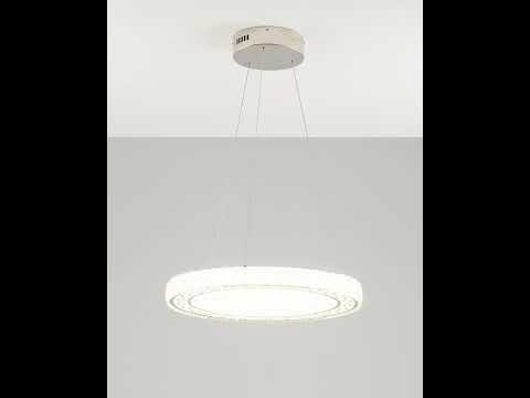 Подвесная светодиодная люстра в стиле хай-тек. Основание плафона выполнено из акрила и декорировано прозрачными вставками из хрусталя. Площадь освещения 20 кв. м., мощность светильника 107 Вт, со световым потоком 15408 Лм. Модель Ice прекрасно впишется в современный и нео-классический интерьер. При монтаже светильника высоту можно отрегулировать с помощью подвесных тросов.