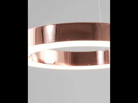 Современный светодиодный подвесной светильник Viso. Металлический каркас цвета розового золота оснащен встроенной светодиодной лентой общей мощностью 48 Вт и со световым потоком 6912 Лм. Подвесная люстра Viso поможет добавить контраста в интерьер спальни, кухни, зала или гостиной комнаты. При монтаже люстры можно отрегулировать высоту за счет подвесных тросов.