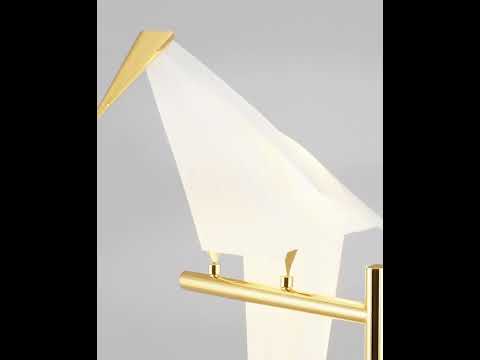 Современный торшер в виде птицы из коллекции Birds оснащен светодиодной лампой. Привлекает своей декоративной функцией в стиле оригами, а также дает комфортный дневной свет. Фигурка птицы может покачиваться от прикосновения или движения воздуха. Металлические элементы, голова и кончик хвоста птицы, служат противовесами. Контакты, расположенные под лапками, позволяют поставить фигурку с одной или другой стороны. Прекрасно дополнит интерьер спальни, детской комнаты или гостиной.