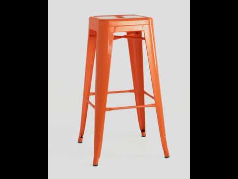 Табурет барный Tolix с твердым сиденьем, металлический: желтый, на металлических ножках: цветные