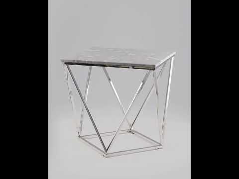 Изящный журнальный столик станет прекрасным дополнением интерьера гостиной или прихожей. Столешница выполнена из искусственного мрамора в сером цвете, который обладает высокой механической прочностью, способен выдерживать большие нагрузки. Влагостойкий и не впитывает загрязнения. Каркас изготовлен из нержавеющей стали с гальваническим покрытием с применением нитрида титана. Такое покрытие обладает рядом преимуществ: ровное и стойкое покрытие высокие эстетические качества длительный срок службы покрытие не осыпается высокая прочность к механическим повреждениям На ножках предусмотрены специальные подпятники, которые предотвращают скольжение и не царапают напольное покрытие.